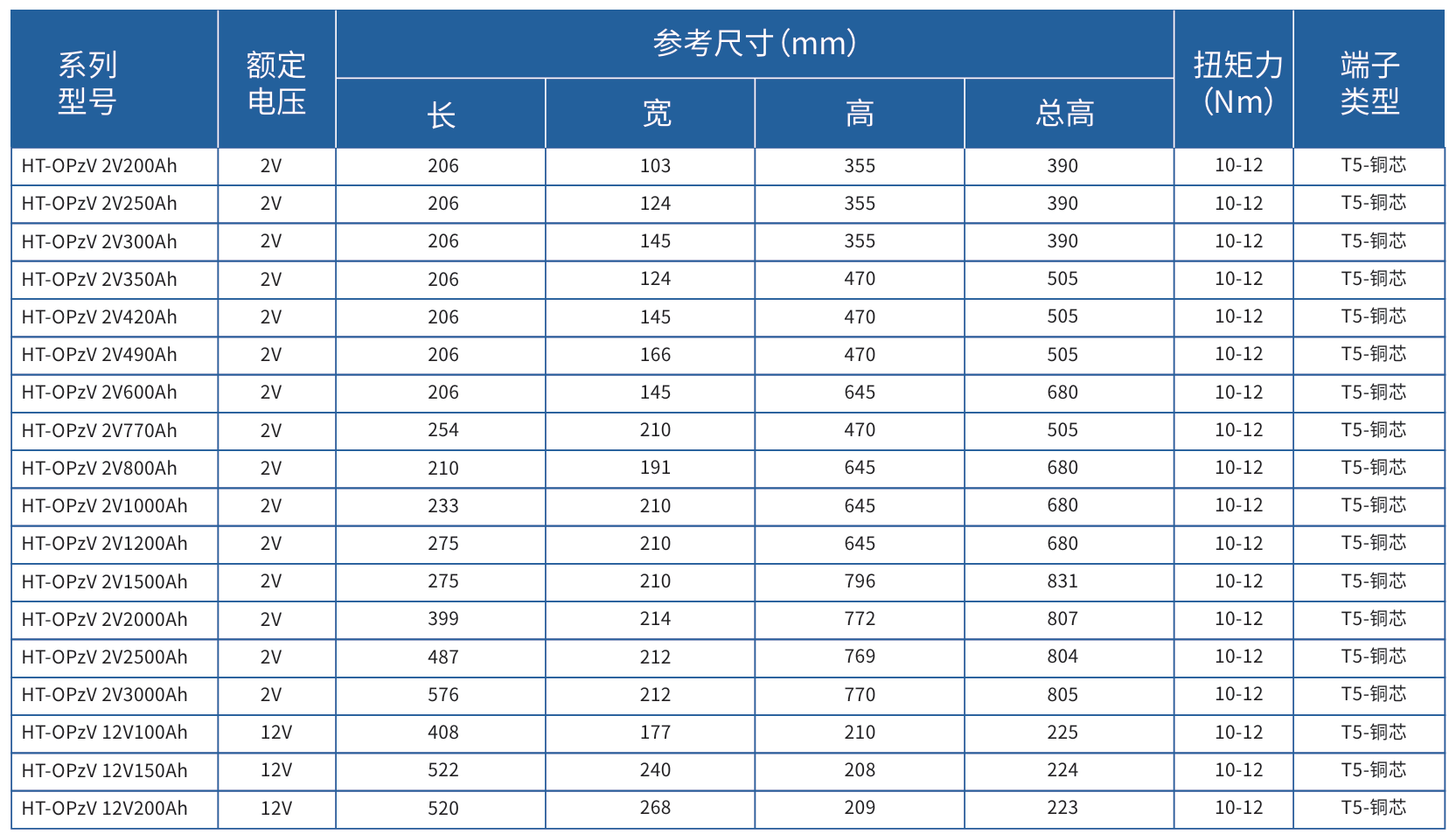 HT-OPzV管式膠體蓄電池設(shè)計壽命2V20年、12V15年(25℃)正極壓鑄板柵,鉛鈣高錫正極板, 晶粒細(xì)小致密,耐腐蝕性好。正極板厚度設(shè)計≥8.5MM,管式正極板,活性物質(zhì)藏于微孔滌綸套管 內(nèi),保證活性物質(zhì)不會脫落。進口高品質(zhì)氣相二氧化硅,呈凝膠狀態(tài)、不流動,無分層,電池循環(huán)性 能好。高性能專用微孔PE隔板,孔率大、電阻低及同時有效避免了短路現(xiàn)象的發(fā)生。新型防火阻燃 高敏低壓膠帽+防爆氣墊,排氣壓力精度高、耐酸防火抗老化,內(nèi)嵌銅芯鉛基極柱具有更大的電流 承載能力與耐蝕性。采用特有密封技術(shù),能夠避免電池漏液。