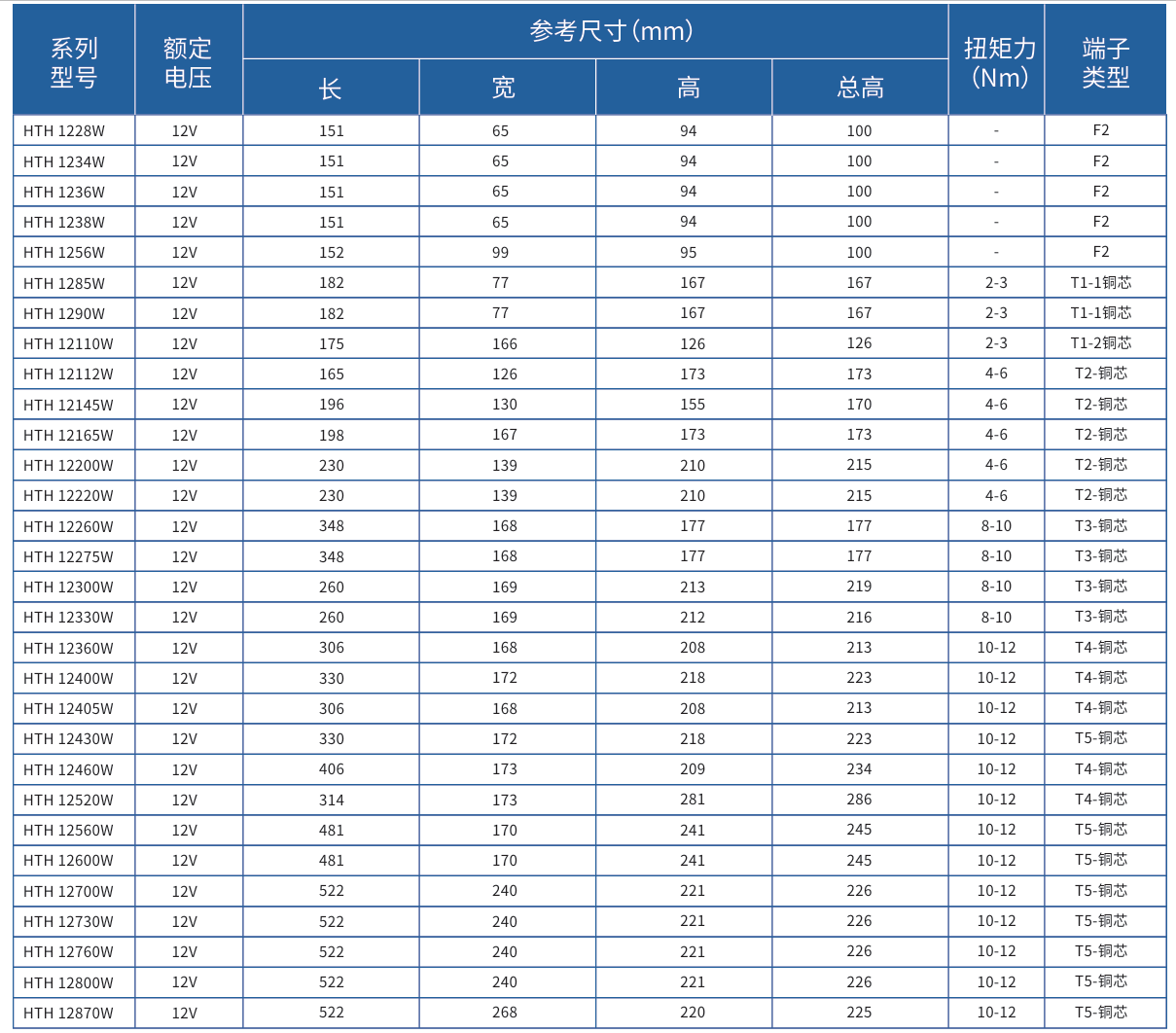 HTH系列蓄電池是高倍率型鉛酸蓄電池。采用 CCDR沖壓板柵,具有密度高、耐腐蝕、一致性好的特點 。此外板柵的高錫多元合金及特殊鉛膏配方,提高了板 柵的耐腐蝕性能。3D結(jié)構(gòu)的設(shè)計,使板柵擁有更大表面 積有利于活性材料粘附,有效延長電池使用壽命。運用 先進的鑄焊、穿壁焊、熱封工藝,使得電池具有內(nèi)阻低、 功率密度高等特點,因此該系列產(chǎn)品在15分鐘高功率 放電的情況下,可比普通AGM電池多輸出更高的功率, 從而用戶可降低配置所需電池數(shù)量或規(guī)格,減少初期投 資。外殼采用高強度ABS材料,提升使用安全性。